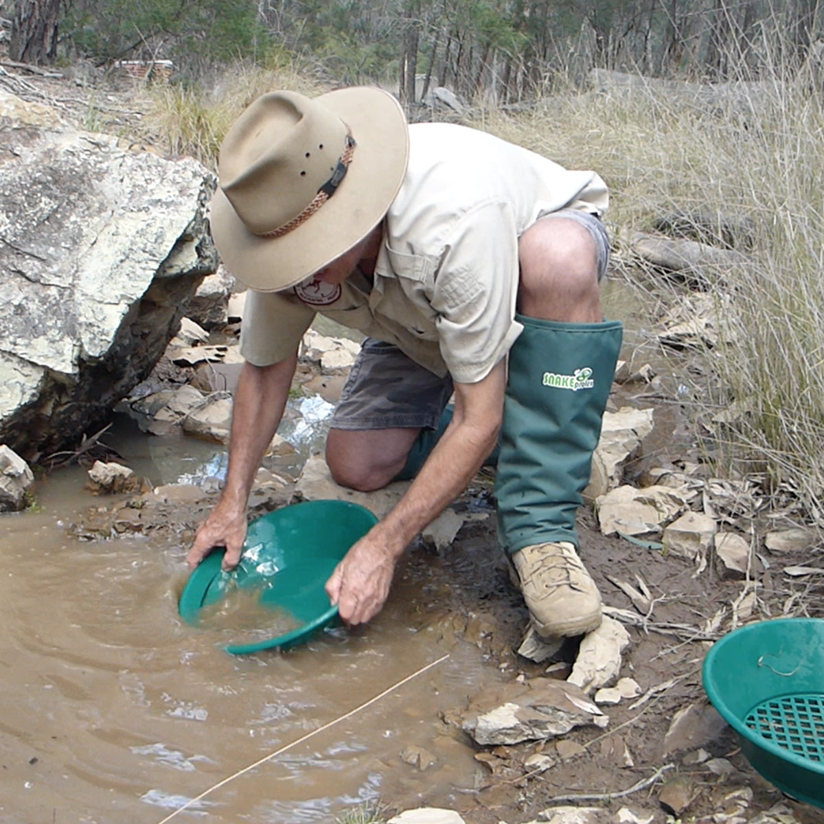 Garrett’s world famous Gravity Trap gold pan series has led the industry for 30 years. Garrett’s gold pans feature a 90° riffled design that ensures safe, sure, rapid gold recovery in wet or dry conditions. All Garrett pans are lightweight, green for enhanced gold nugget visibility, and virtually indestructible. Tested and proven worldwide by Charles Garrett, Roy Lagal and tens of thousands of prospectors, Garrett’s gold pans are a must for every recreational and electronic gold seeker.